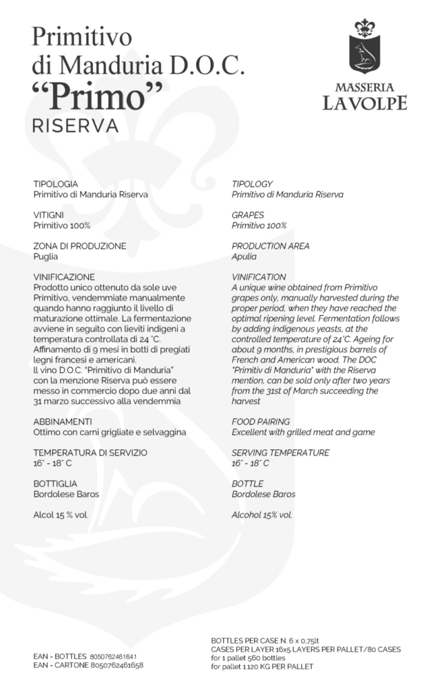 HomeProdottiPrimitivo di Manduria “Primo” Riserva